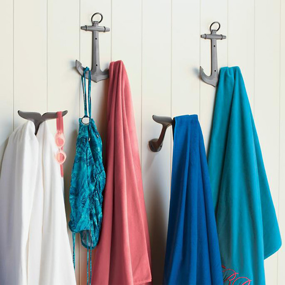 If you have a pool, outdoor wall hooks are a convenient way to dry your towels. Even the laziest swimmer, who is tempted to leave their towel in a pile on the carpet inside, is likely to use the hook instead. Sneakily coordinate with your outdoor decor, so the drying towels add a design element. Get the look below at frontgate.com.