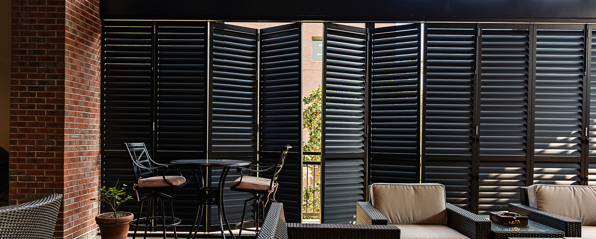 Aluminum shutters and exterior shades give you so many possibilities. By design, they are strong, durable, beautiful, and ingenious. They allow you to use your outdoor space regardless of the weather, creating true outdoor rooms, and providing privacy and security. They allow you to live outside MORE.
